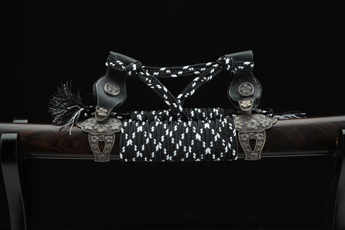• Saya (鞘): Lacquered wood scabbard reinforced with a leather frame and sageo for durability and elegance.